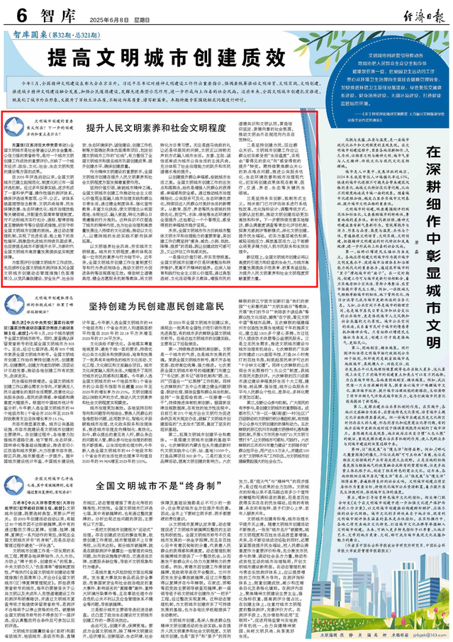 作為精神文明建設(shè)的重要抓手,全國文明城市創(chuàng)建在提升人民文明素養(yǎng)和社會文明程度方面發(fā)揮著重要作用。