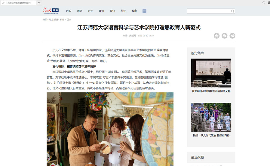 【光明網(wǎng)】江蘇師范大學(xué)語(yǔ)言科學(xué)與藝術(shù)學(xué)院打造思政育人新范式