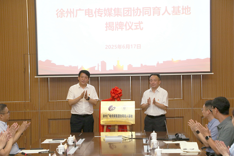 芮國強(qiáng)與馮仰琦共同為“徐州廣電傳媒集團(tuán)協(xié)同育人基地”揭牌,雙方代表共同簽署合作協(xié)議。