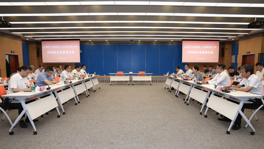 7月12日下午,學校與云龍區舉行校地融合發展懇談會。校黨委書記芮國強,校長杜增吉,副校長朱國軍、張其飛,云龍區委書記陳婕,區委副書記、區長鄭偉,常務副區長周泉,區政法委書記張健,以及我校和云龍區委區政府有關部門負責同志參加活動。副校長商亮主持懇談會和簽約儀式。