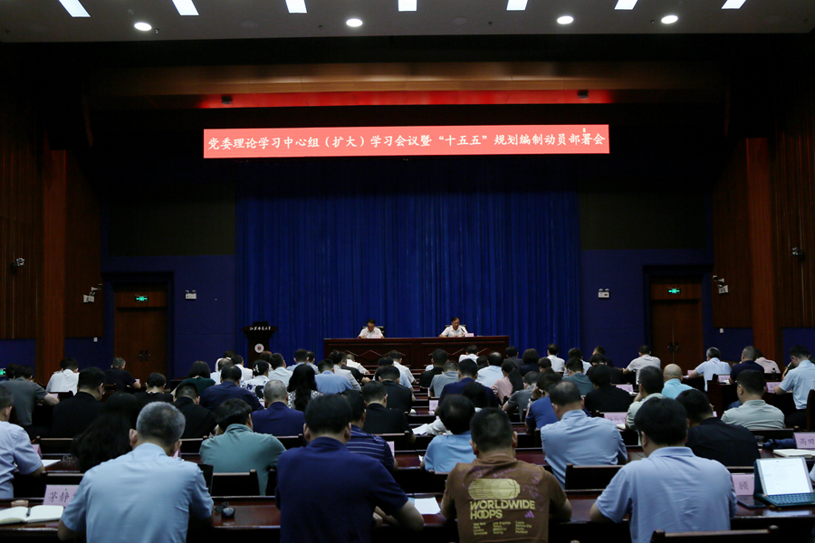8月8日下午,學校召開黨委理論學習中心組(擴大)學習會議暨“十五五”規劃編制動員部署會。會議深入學習習近平總書記關于“十五五”規劃編制工作的重要指示精神,解讀學?!笆逦濉币巹澗幹品桨?,交流專項工作思路和學院規劃編制思路。全體校領導出席會議,各學院黨政負責人、各部門及直屬業務單位負責人、“十五五”規劃編制相關部門人員參加會議。校黨委書記芮國強主持會議并講話,校長杜增吉部署規劃編制工作。