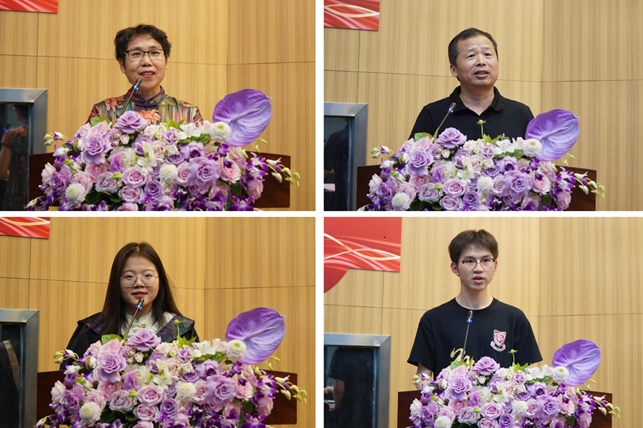 畢業(yè)生代表19級數(shù)學師范班張譯丹,非畢業(yè)班學生代表20級英語師范班喬楷,優(yōu)秀院友代表南京郵電大學教師齊沁兒,家長代表19級漢語言文學師范班劉芯陽同學的父親劉勇同志,導師代表文學院王淑梅教授依次發(fā)言。