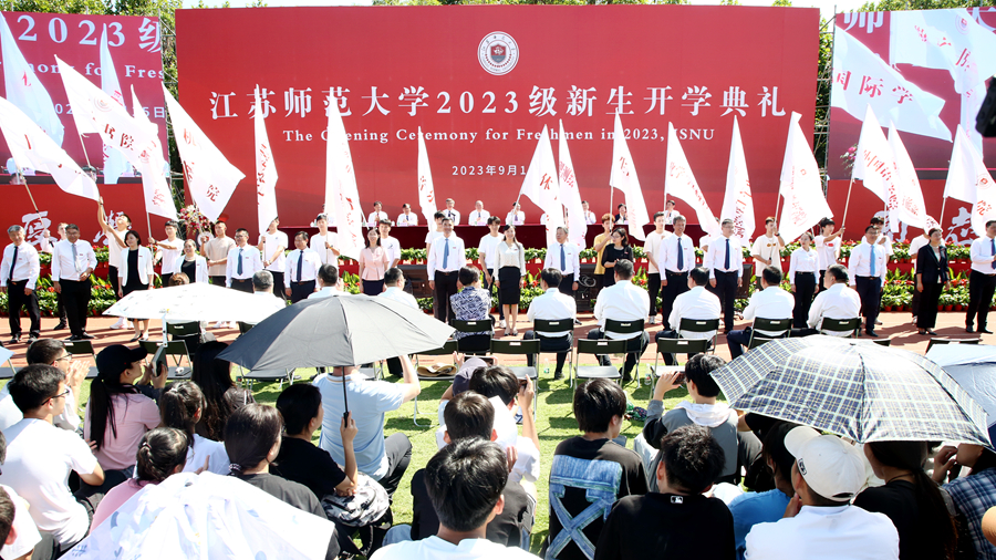 莘莘學子聚蘇師,昂首闊步新征程。在這金秋九月,我校迎來了8094名2023級新同學。9月15日上午,江蘇師范大學2023級新生開學典禮隆重舉行。在校全體校領導出席典禮,校機關部門主要負責同志,各學院黨政負責人、副書記、輔導員,教師代表,校友代表,老生代表,以及全體2023級本科生和碩士、博士研究生參加典禮。典禮在泉山校區田徑場和云龍校區體育場分別舉行。校黨委副書記蔡國春主持典禮。
