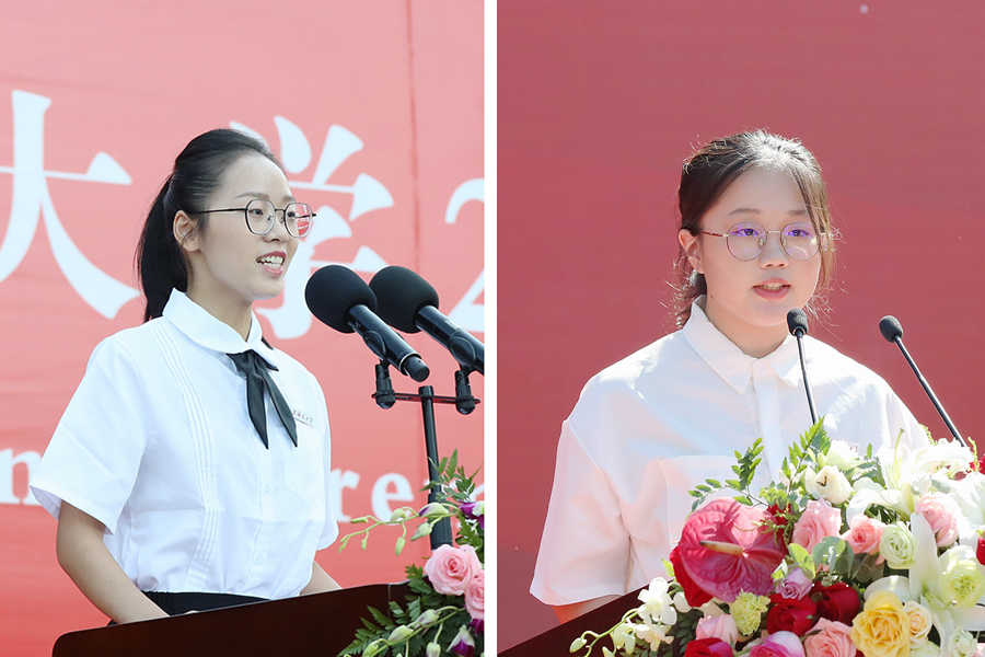 吳鈺和曹佳怡兩位同學作為新生代表分別發言