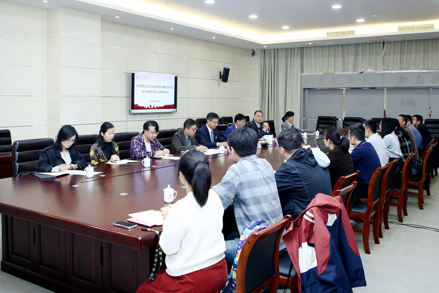 10月30日上午,我校召開學習貫徹習近平總書記重要賀信和歐美同學會成立110周年慶祝大會精神座談會。校黨委副書記蔡國春,校黨委常委、副校長、校歐美同學會會長杜增吉,校黨委常委、組織部部長、統戰部部長黃德志出席會議。會議由校黨委常委、副校長、校歐美同學會副會長趙鵬主持。校歐美同學會秘書長陳健領學了習近平總書記的賀信和歐美同學會成立110周年慶祝大會有關精神。歐美同學會全體理事、會員代表及部分優秀留學歸國人員代表參加座談會。