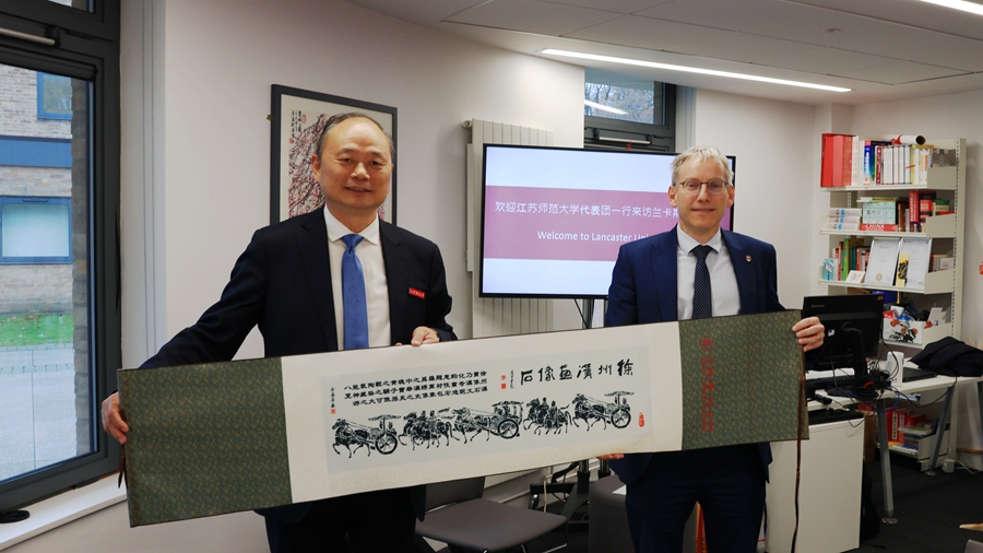 方忠表示,蘭卡斯特大學與我校雖然相隔萬里之遙,但辦學規模和優勢學科相近,未來有著很大的合作空間,本次交流為兩校深化合作奠定了基礎,對合作前景充滿信心。斯科菲爾德校長介紹了蘭卡斯特大學的校史和學科發展情況,與江蘇師范大學的優勢學科分布極為相似,希望兩校能進一步增進了解,深化合作,建立長期而穩固的戰略合作伙伴關系。