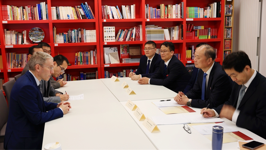 彭雯和陳薇對歐洲中文教師教育學院的成立表示熱烈祝賀,對江蘇師范大學為歐洲華文教育做出的貢獻表示感謝,預祝雙方合作能夠取得成功,成果遍及歐洲。