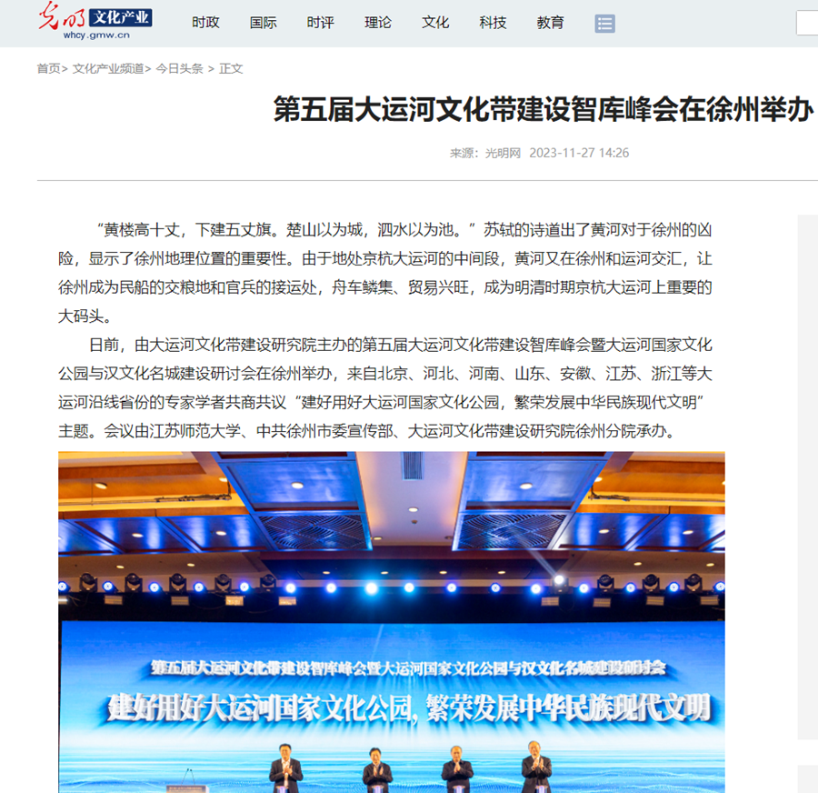 光明網(wǎng)11月27日報道我校承辦的第五屆大運河文化帶建設(shè)智庫峰會,報道內(nèi)容如下: